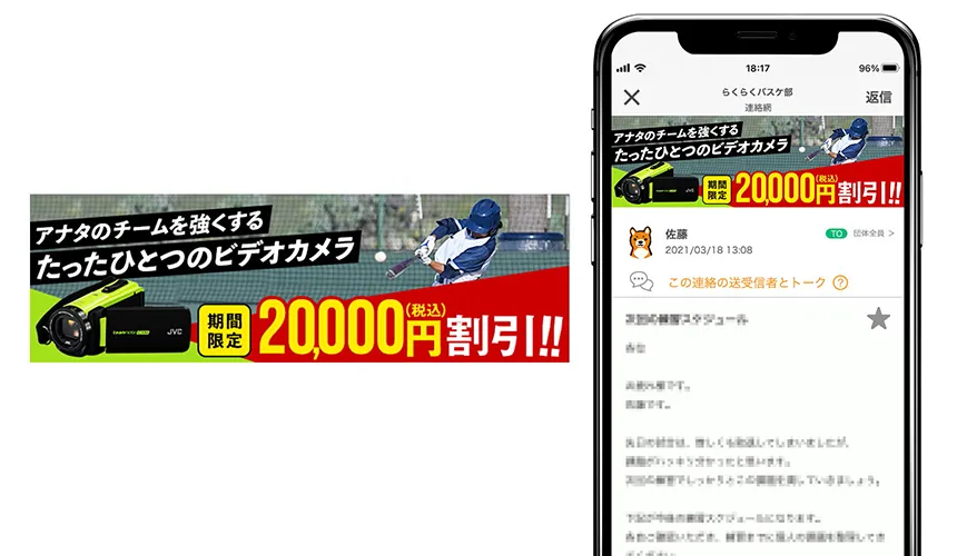 らくらく連絡網タイアップLP&TM制作|スポーツ向けビデオカメラ訴求
