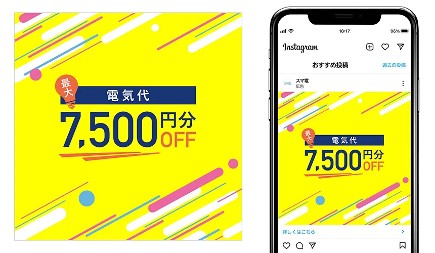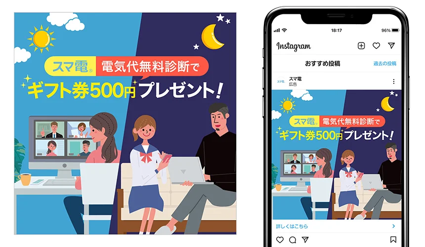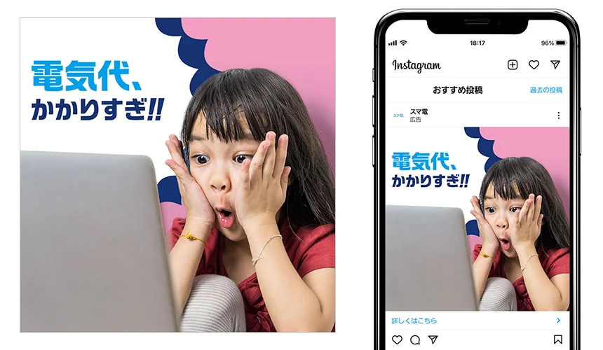 株式会社アイ・グリッド・ソリューションズ様の提供する家庭向け電力「スマ電」の利用者獲得プロモーションを実施するため、SNS広告用バナー・動画を作成いたしました。