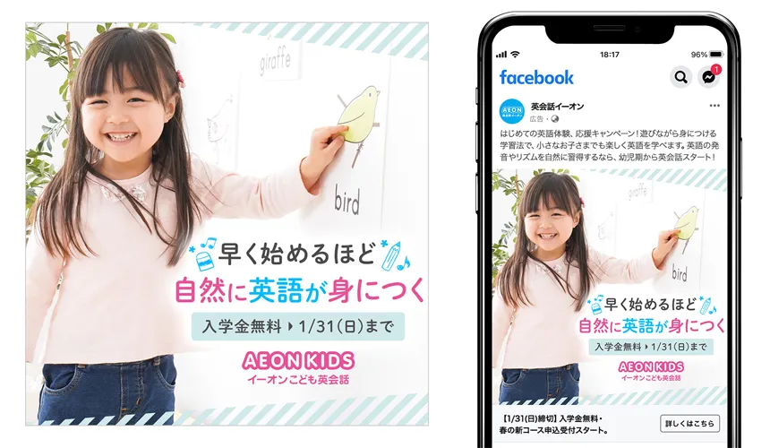 イーオンキッズ様の幼児・小学生向けクリエイティブをご紹介します。