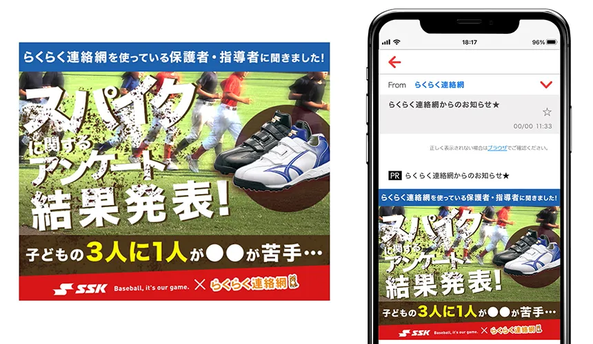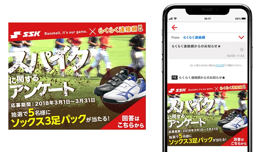 らくらく連絡網タイアップLP&TM制作|スポーツ用品訴求