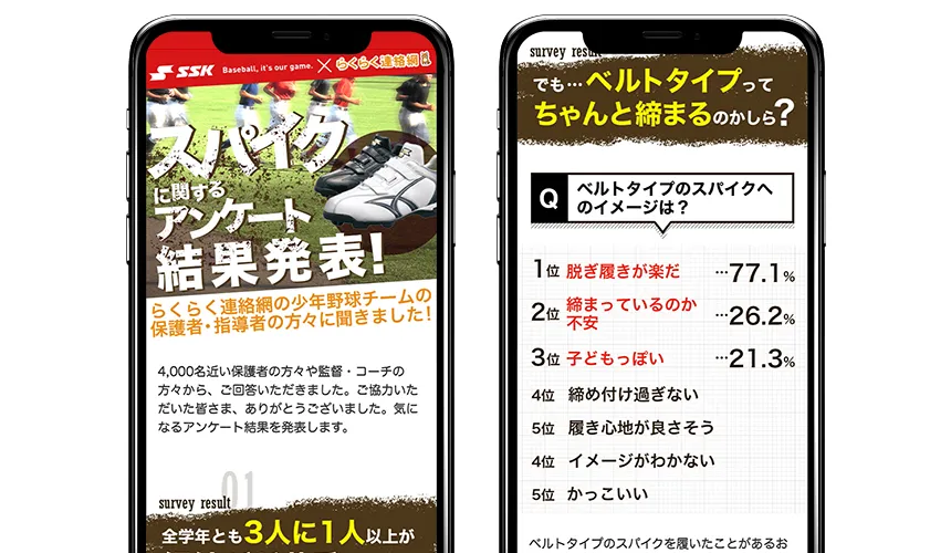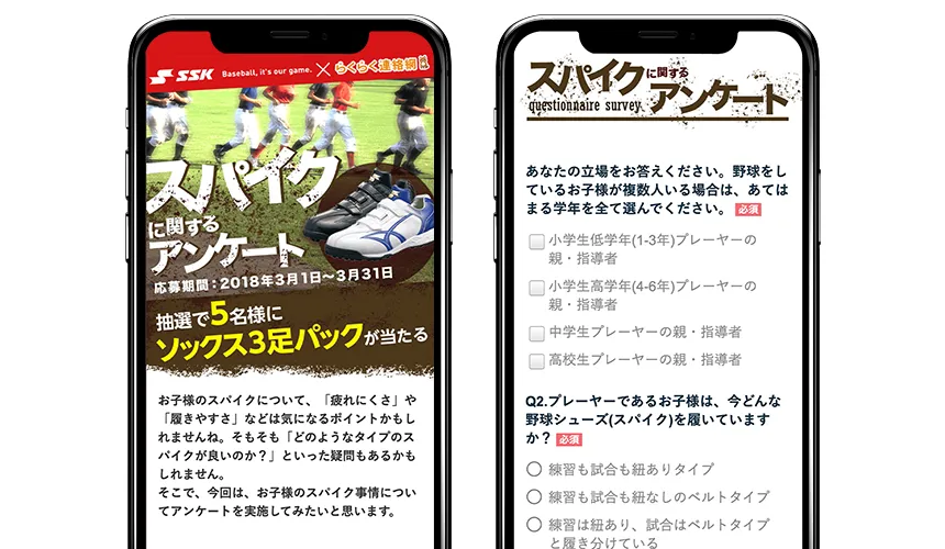 今回は、同社の野球スパイク訴求のために作成したプロモーテッドアンケート&アンケート結果LPのクリエイティブをご紹介いたします。