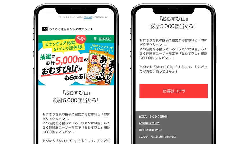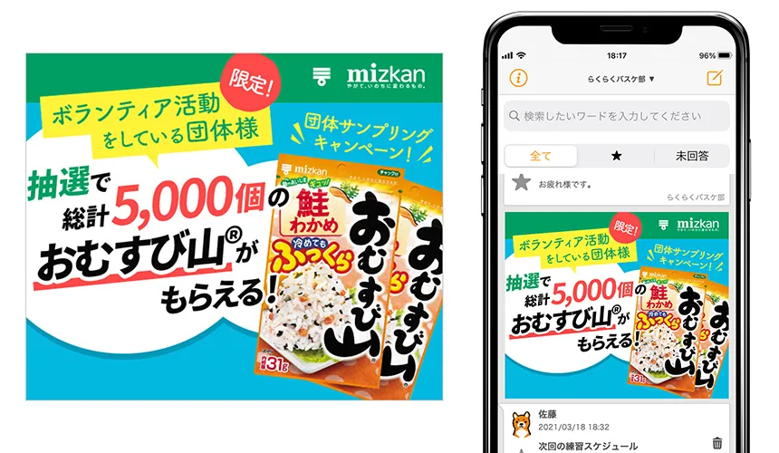 「らくらく連絡網」を通じて、会員に広くキャンペーン告知を行うと同時に、SNS投稿を促進させるための施策として、「グループサンプリング」プロモーションを実施いたしました。